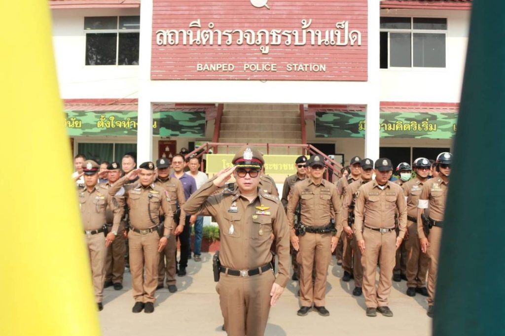 วันที่ ๒๓ มีนาคม ๒๕๖๘ พ.ต.อ.ภาคภูมิ เดชะเรืองศิลป์ ผกก.สภ.บ้านเป็ด ,พ.ต.ท.ชนธรรมนิลฑมร รอง ผกก.สส.ฯ,พ.ต.ท.ประเสริฐ ตุ้มฉิม รอง ผกก(สอบสวน)ฯ พร้อมข้าราชการตำรวจ สภ.บ้านเป็ด ทุกนาย รวมเคารพธงชาติ รับฟังนโยบายของผู้บังคับบัญชาและข้อกำกับการปฏิบัติหน้าที่ให้เป็นไปตามกฎหมายอย่างเคร่งครัด ไม่ให้เรียกรับทรัพย์สินหรือประโยชน์อื่นใด จากการปฏิบัติหน้าที่โดยเด็ดขาด